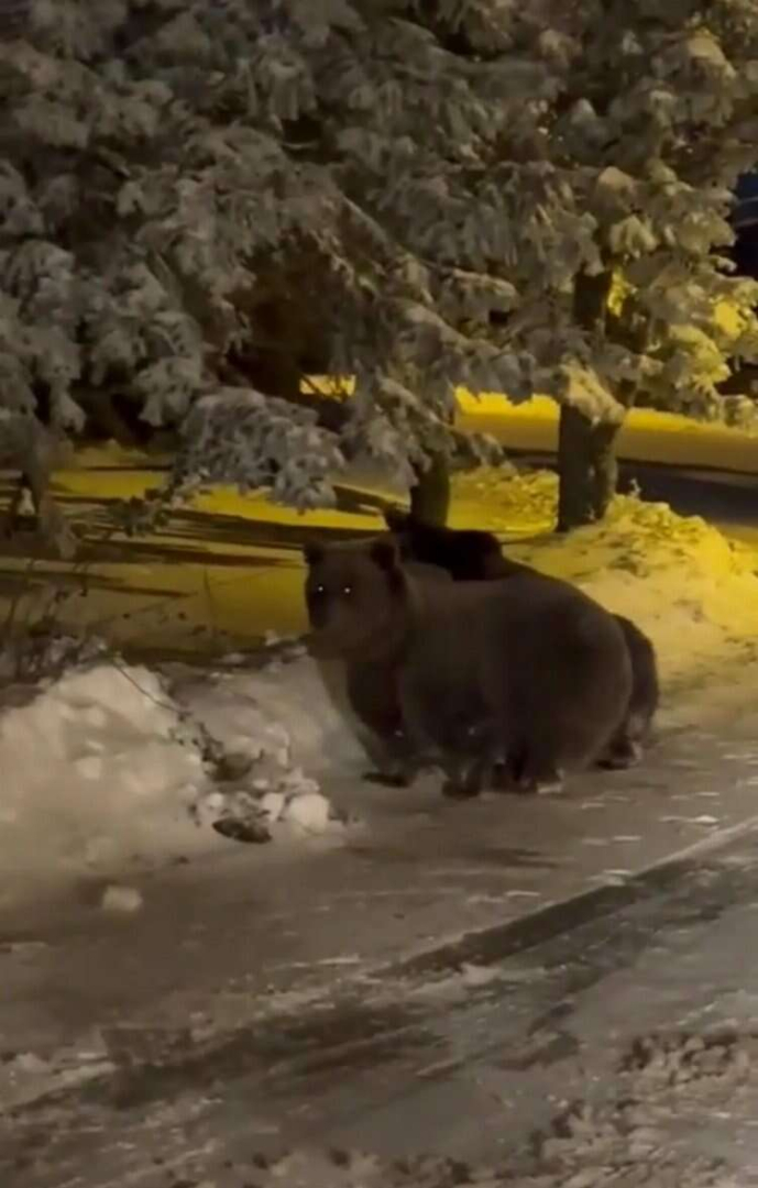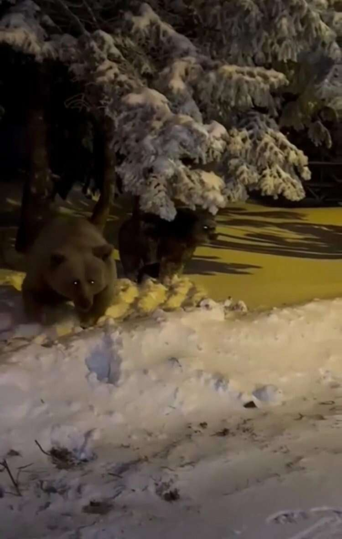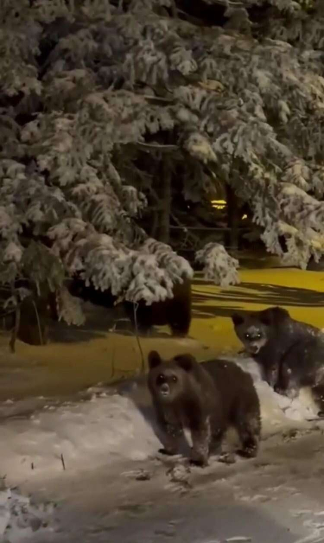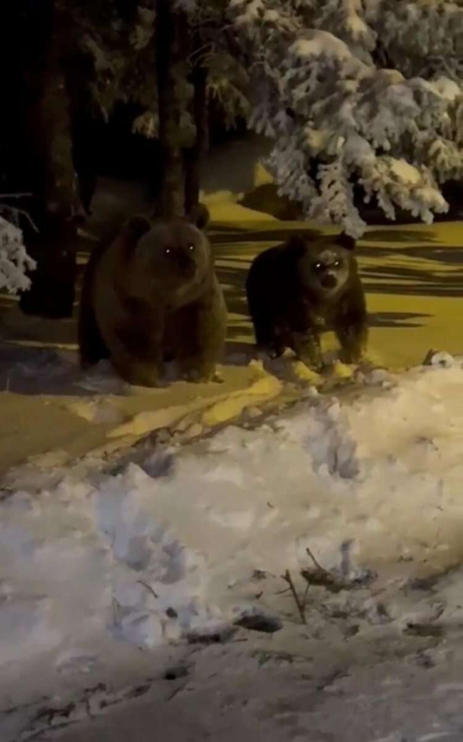 Türkiye’nin en büyük kış turizm merkezlerinden biri olan Uludağ’da kar yağışının başlamasıyla bazı vatandaşlar Uludağ’a koştu. Sarıalan’da yemek arayan ayıları gören bazı kişiler ise araçlarıyla durup ayıları izlemek istedi.