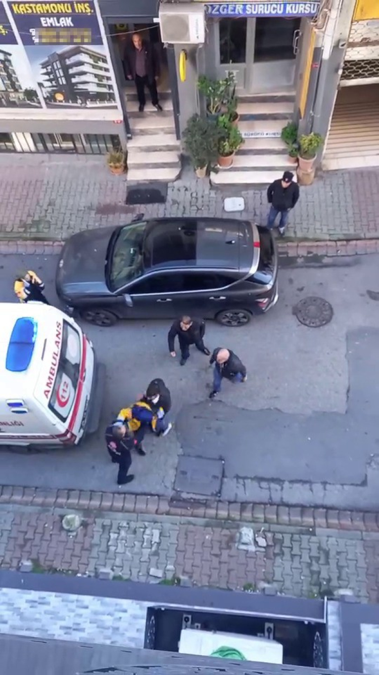 Ümraniye'de vakaya giden ambulansın önünü keserek yumruklayan şahsın o anları cep telefonu kamerasına yansıdı.