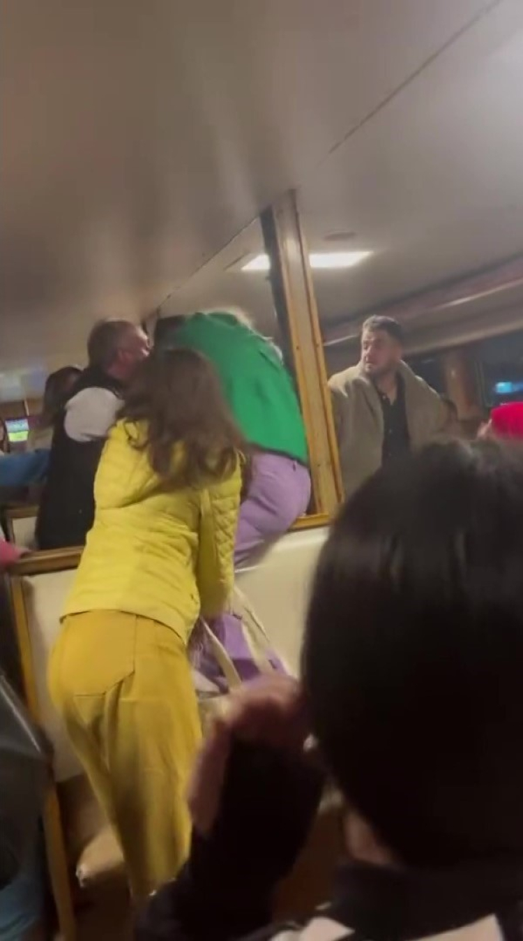 Küfürlerin havada uçuştuğu kavga, diğer yolcuların araya girmesiyle sonlandı. Yaşanan kavga anları ise vatandaşın cep telefonu kamerasına yansıdı.