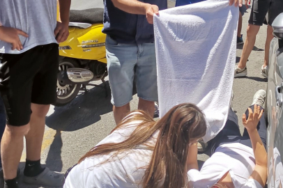Sıcak hava nedeniyle yerde yatan kadının güneşten etkilenmemesi için vatandaşlar, üzerine havlu örterek gölgelik oluşturdu. Olay yerine sağlık ve polis ekipleri sevk edildi. İlk müdahalesi olay yerinde yapılan kadın sürücü, ambulansla hastaneye kaldırıldı.