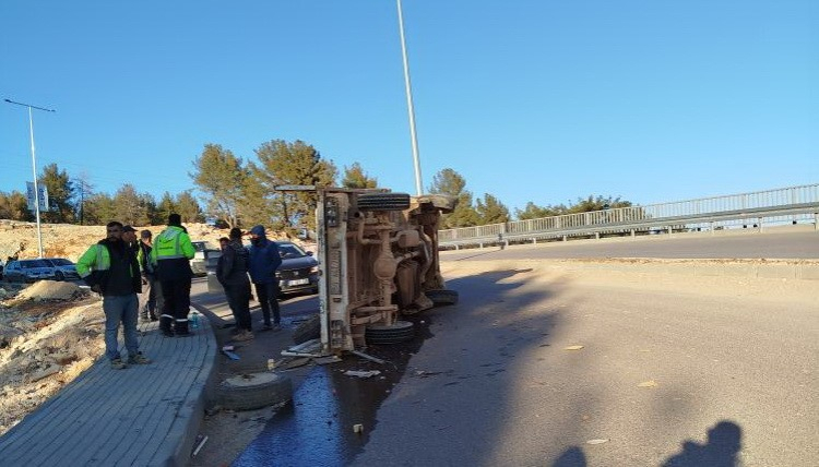 Adıyaman’da sürücüsünün direksiyon hakimiyetini kaybetmesi sonucu virajı alamayan kamyonet devrildi.