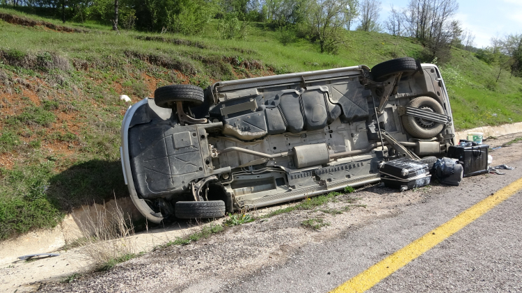 Kastamonu'da virajı alamayan hafif ticari aracın refüje çarptıktan sonra takla attı. Kazada 4 kişi yaralandı.