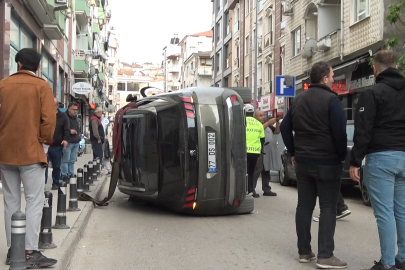 Yalova'da park halindeki araçlara çarpan cip yan yattı