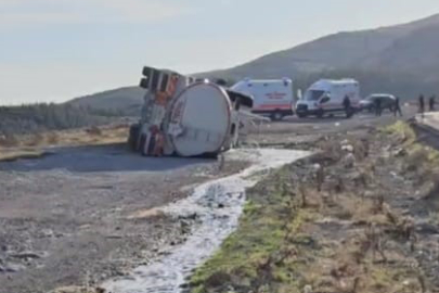 Gaziantep'te yola dökülen yağdan dolayı kontrolden çıkan yakıt tankeri, karşı şeritten gelen bir araçla çarpıştıktan sonra devrildi.