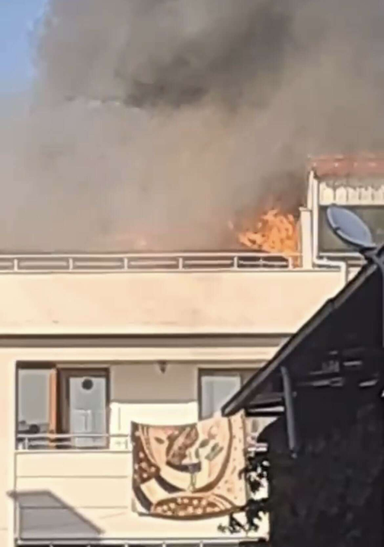 Bursa’da 3 katlı bir binanın çatı katında yangın çıktı. Alevlerin yan binaya sıçradığı yangını itfaiye ekipleri, 1 saatlik çalışma sonrası söndürdü.