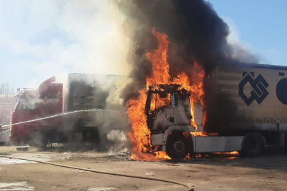Eskişehir’de 3 tırın ortasında bulunan bir tırda çıkan ve kısa sürede 2 tıra daha sıçrayan yangın itfaiye ekiplerinin müdahalesiyle kontrol altına alındı.