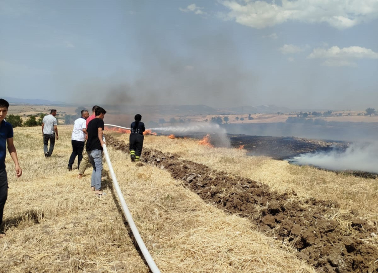 Meydana gelen anız yangını ekili alanlara sıçradı. Yangında yaklaşık 20 dönüm ekili alan zarar gördü.