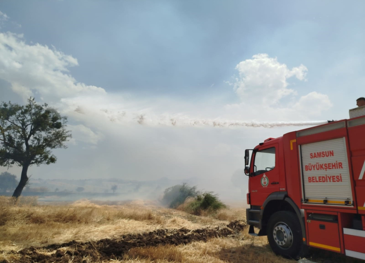 Vezirköprü ilçesi Kılıçgüney Mahallesi’nde çıkan anız yangını buğday tarlalarına sıçradı. Vatandaşlar durumu 112’ye bildirdi. İhbar üzerine yangın mahalline itfaiye ekipleri sevk edildi.