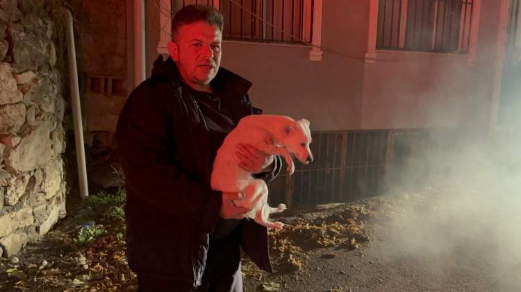 Apartmanın merdiven boşluğunda çıkan yangın nedeniyle vatandaşlar evlerinde mahsur kaldı. Bazı vatandaşlar çocuğunu ve köpeğini yoğun dumanlara rağmen dışarı çıkarmayı başardı.
