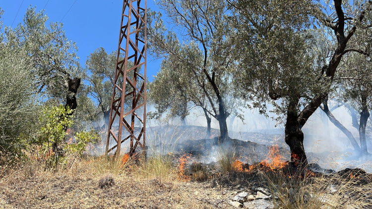 Balıkesir'in Edremit ilçesinde zeytinlik alanda çıkan yangına itfaiye ekipleri ile Orman Bölge Müdürlüğüne ait 2 uçak ile müdahale edildi.