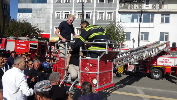 Kars’ta çok katlı bir otelde çıkan yangında can pazarı yaşandı.