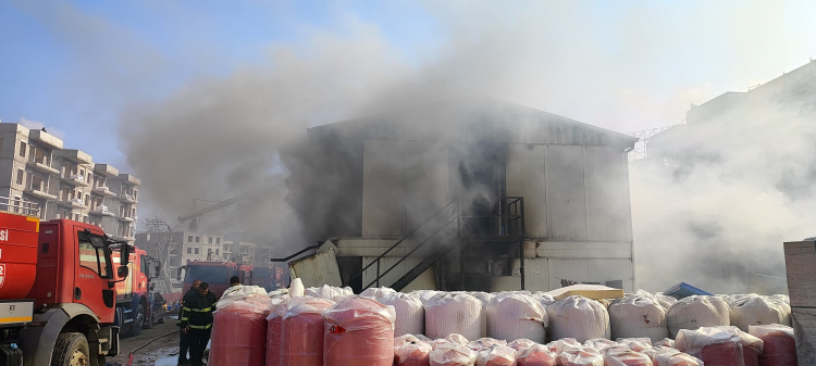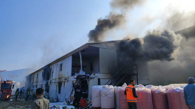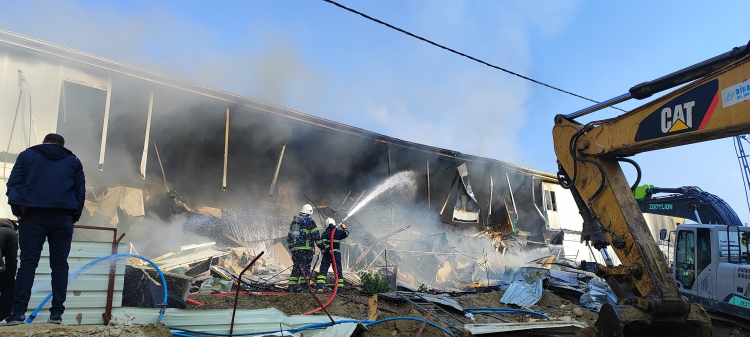 Hatay’da şantiye alanında bulunan işçilerin kaldığı konteyner yatakhane alevlere teslim oldu.