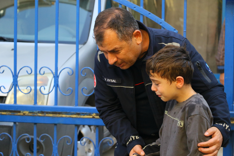 Küçük çocuğu itfaiye erleri sakinleştirdi