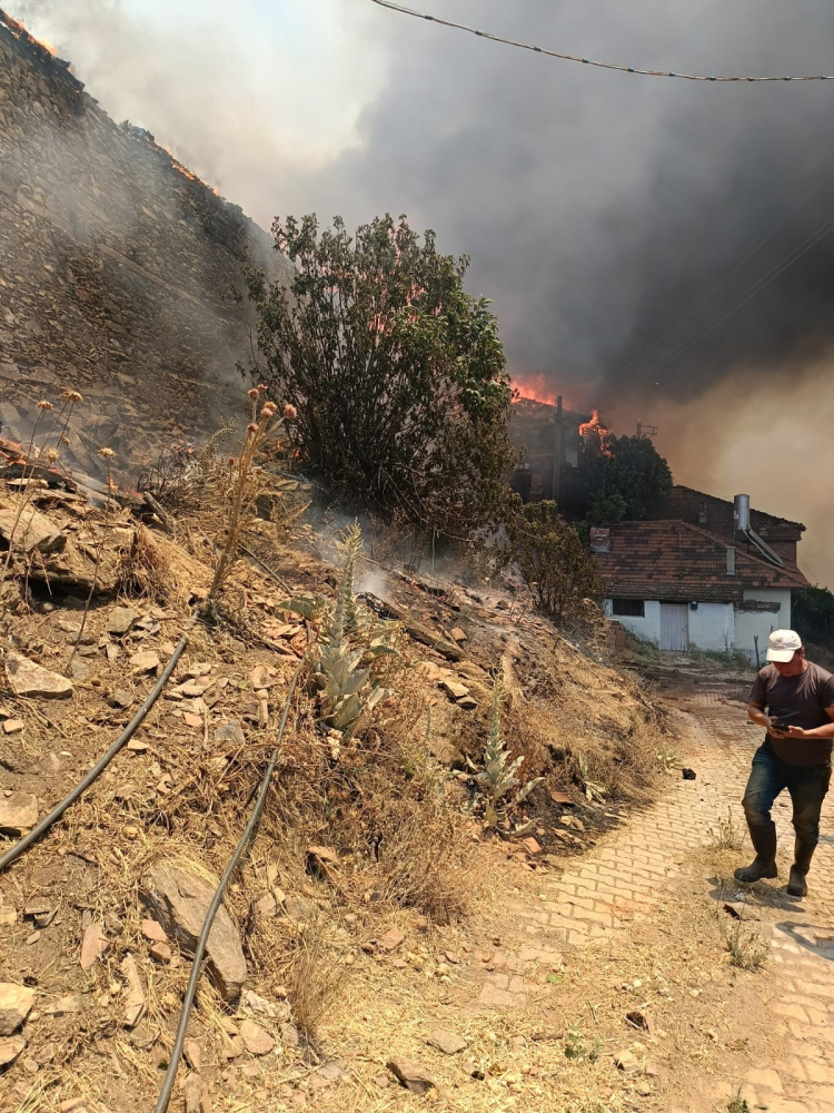 Tahliye edilen mahallelerde bazı evler, ekiplerin tüm müdahalesine rağmen rüzgarın şiddetiyle alevlere teslim oldu. Özellikle ağaçlık bölgelere yakın olan bazı evler tamamen yandı. Evlerden yükselen alevler ve dumanlar, uzaktan çaresizde izleyen vatandaşların yüreklerini sızlattı.