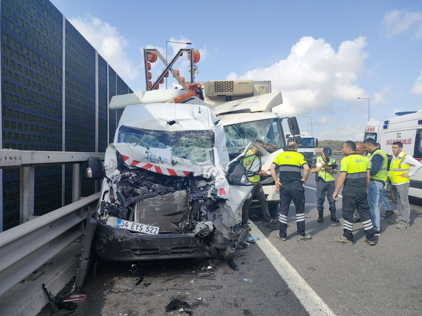 Yavuz Sultan Selim Köprüsü’nde seyir halindeki bir kamyonet yol kenarında çalışma yapan başka bir kamyonete çarptı.