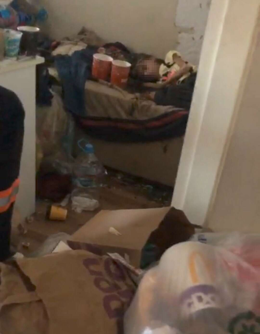 Çöp evin temizlenmesi için Nilüfer Belediyesi ekiplerine haber verilmesinin ardından eve gelen ekipler, temizlik çalışmasına başladıkları sırada 1 odanın kapısının kilitli olduğunu fark etti. Kapıyı kırıp içeri giren görevliler, çöple dolu odada baygın halde yatan çocukla karşılaştı. Çocuğun kilitlendiğinin ve tuvaletini dahi odaya yaptığının görülmesiyle, polis ve 112 Acil Sağlık ekiplerine haber verildi. Sağlık ekiplerinin ilk müdahalesinin ardından Bursa Uludağ Üniversitesi Hastanesi'ne kaldırıldı. Yaklaşık 1 yıldır odada tutulduğu değerlendirilen çocuğun saçlarıyla tırnaklarının uzadığı, çok zayıfladığı ve vücudunda yaralar olduğu görüldü.