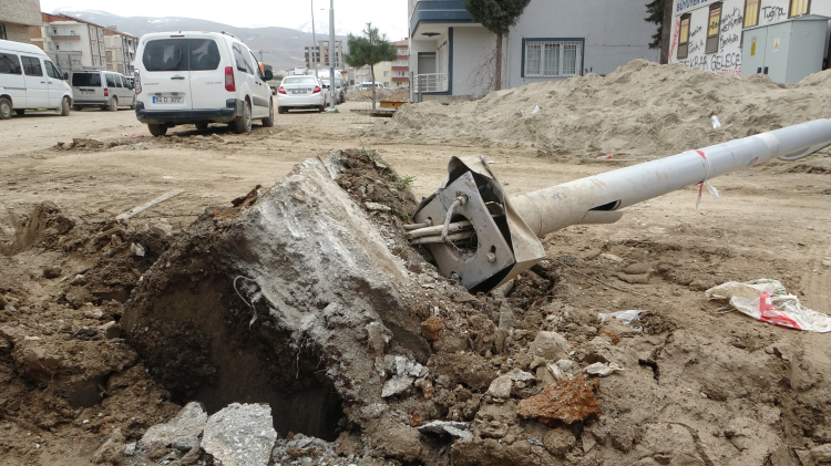 Yerinden Sökülmeye Çalışılan Aydınlatma Direği Üzerine Düştü