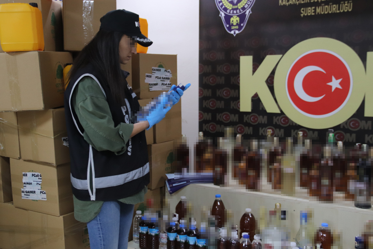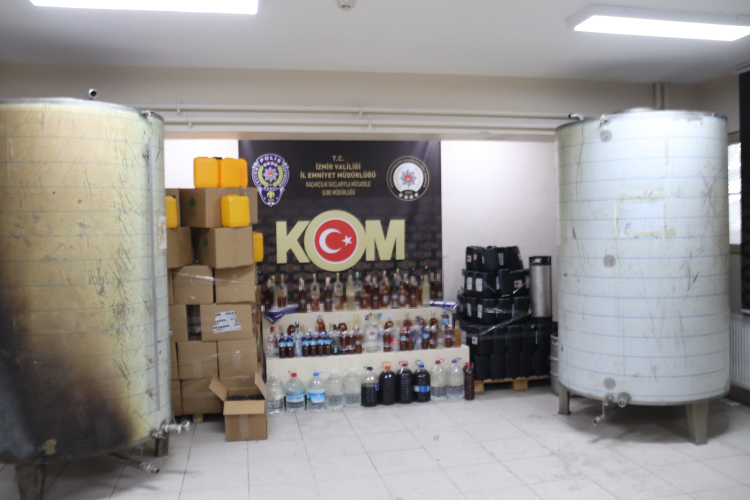 İzmir İl Emniyet Müdürlüğü Kaçakçılık Suçlarıyla Mücadele Şube Müdürlüğü ekipleri, İzmir Cumhuriyet Başsavcılığı koordinesinde, yılbaşı öncesi merdiven altı tabir edilen yerlerde üretilerek depolanan ve satışa sunulan sahte alkollerle ilgili çalışma yürüttü. Tüketilmesi halinde insan sağlığına çok ciddi zararları olabilen sahte içki ve etil alkol kaçakçılarına yönelik yapılan çalışmalarda; 36 bin 201 litre sahte/taklit etil alkol, 694 şişe/litre sahte içki, 860 adet boş içki şişesi, 15 bin 779 adet sahte/taklit etiket, 12 bin 810 adet kapak, 3 bin 600 adet sahte/taklit bandrol, 26 adet 1 tonluk boş plastik tank, 10 adet farklı boy ve ebatlarda plastik tank, 8 litre içki aroması, 6 adet aktarım motoru, 2 adet soğutucu cihaz, 5 adet alkol damıtma kazanı, 2 adet etil alkol doldurma makinesi ve 2 adet folyo kapatma makinesi ele geçirildi.