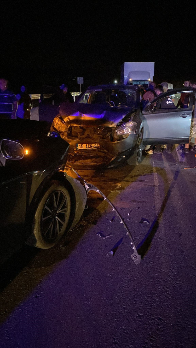 Edinilen bilgilere göre, yol yapımı nedeniyle tek şerit üzerinden trafiğin ilerlediği alanda Antalya'dan Bucak istikametine gitmekte olan Serkan A. idaresindeki 15 ACR 65 plakalı Nissan marka otomobil ile Bucak'tan Antalya istikametine seyir halinde olan Bilal T. idaresindeki 26 AJN 246 plakalı Ford marka araç kafa kafaya çarpıştı.