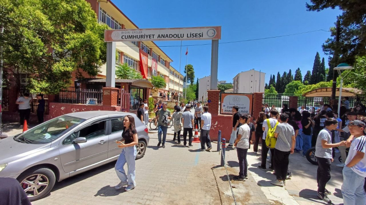 Aydın'ın Efeler ilçesinde öğle arasında bir liseye paket servis getiren kurye ile o esnada okuldan aracıyla çıkmaya çalışan öğretmen arasında yol verme kavgası çıktı.