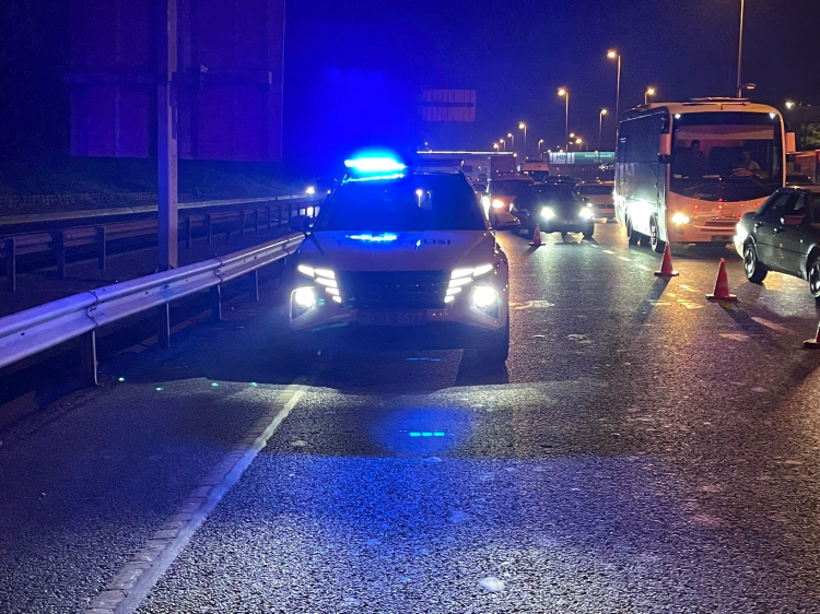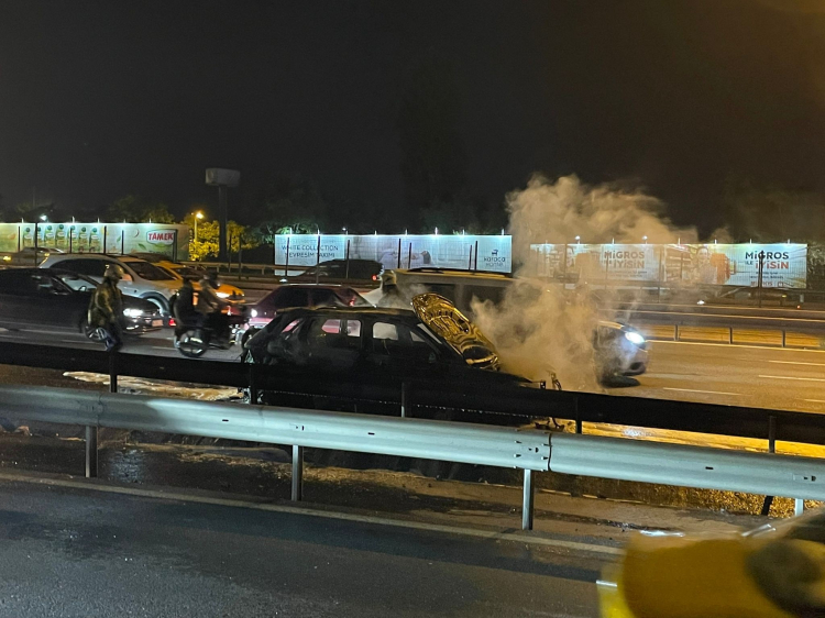 Henüz bilinmeyen bir nedenle çıkan yangını gören sürücü, otomobili emniyet şeridine çekerek yanındaki kişiyle araçtan inip ihbarda bulundu. İhbar üzerine olay yerine gelen polis ekipleri, araç çevresinde güvenlik önlemleri alırken, yangın itfaiye ekiplerinin müdahalesi sonrasında kısa sürede söndürüldü.