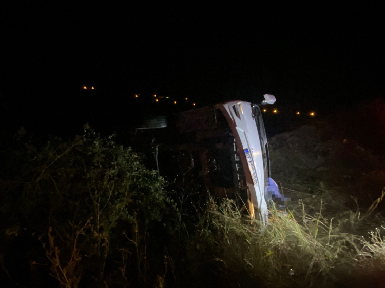 Antalya'nın Serik ilçesinde yoldan çıkarak devrilen midibüsün altında kalan sürücü hayatını kaybetti.