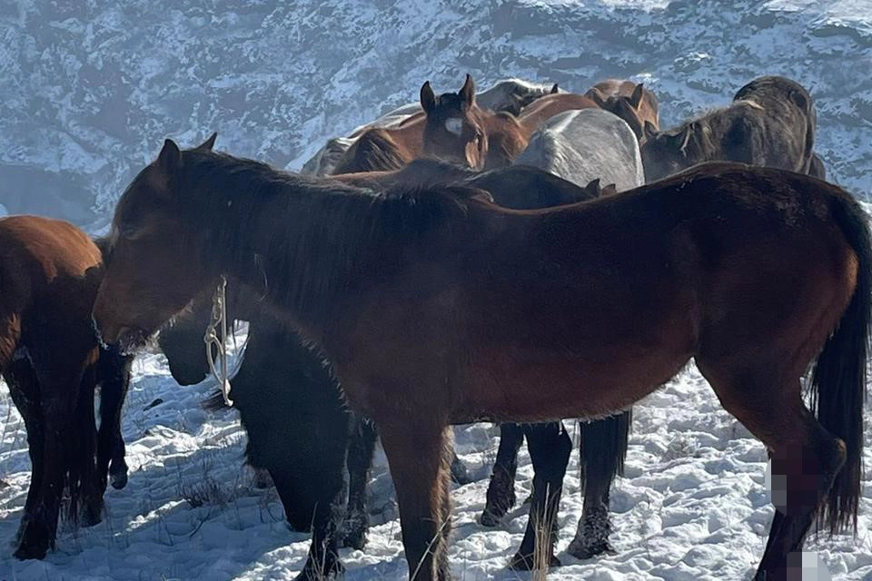 Kars'ta yaklaşık 15 at karla kaplı arazide yaralı halde bulundu.