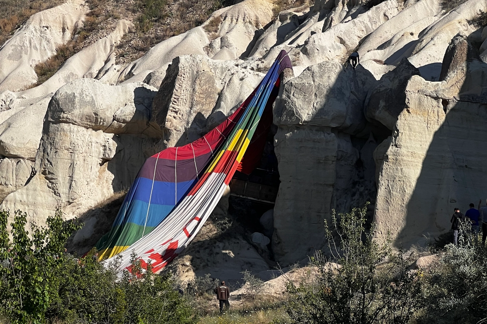 Sabah saatlerinde Avanos ilçesine bağlı Çavuşin köyünden havalanan sıcak hava balonlarından biri, Göreme beldesinde bulunan Aşk Vadisi'ne geldiğinde ters rüzgara kapıldı. Balon pilotu Caner Uzun, tehlikeyi fark ederek acil iniş kararı aldı. Alçak irtifada uçan sıcak hava balonunu inişe hazırlayan Uzun, peribacaları arasına acil iniş yaptığı sırada balon peribacaları arasına sıkıştı. Haber verilmesi üzerine bölgeye sağlık, itfaiye ve kurtarma ekipleri sevk edildi. Balondaki tamamı yabancı olan 20 turist ve balon pilotu, güvenli bir şekilde merdivenle tahliye edildi.