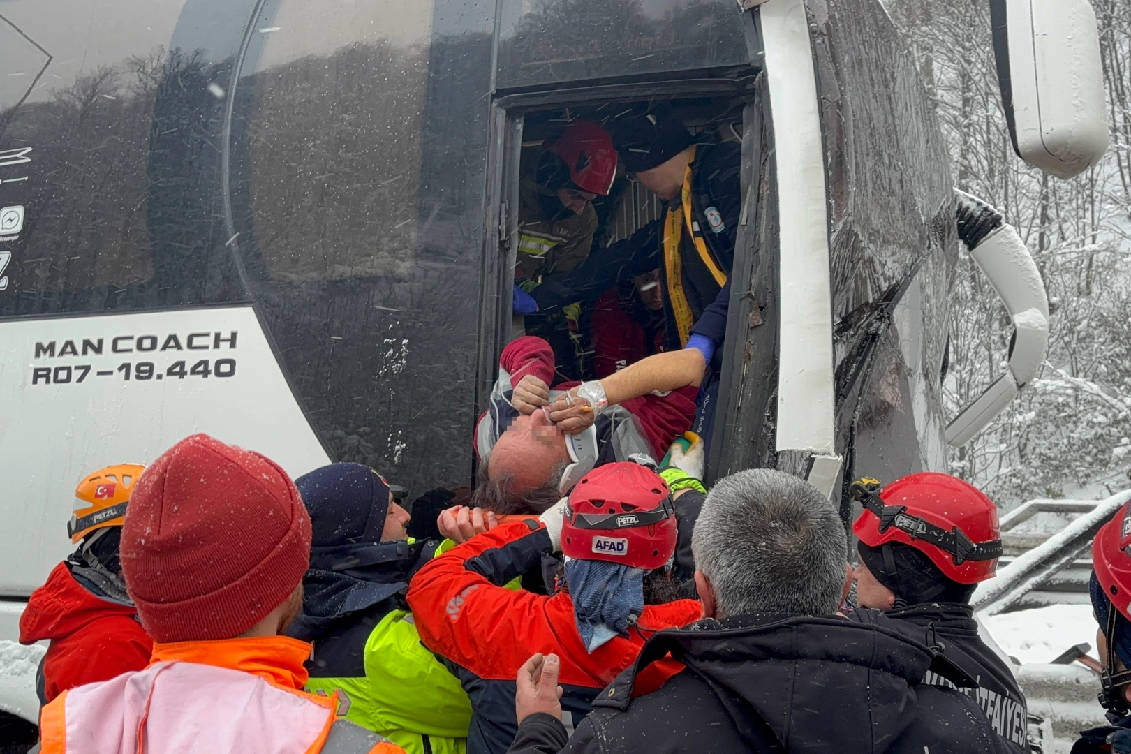 Kaza, TEM Otoyolu’nun Bolu Dağı Tüneli mevkisi Ankara istikametinde meydana geldi. Edinilen bilgiye göre, aniden bastıran kar yağışı sebebiyle sağ ve orta şeritte birçok araç ilerlemekte güçlük çekti. Sol şeritten araçları geçen Baransel Karaca yönetimindeki 06 ESH 719 plakalı tıra, arkasından gelen Nader M. idaresindeki 90AB684 plakalı yolcu otobüsü çarptı. İran’a giden ve içerisinde 28 yolcunun bulunduğu kazada otobüs şoförü araçta sıkışarak yaralandı. Durum 112 Acil Çağrı Merkezi’ne bildirildi. Olay yerine itfaiye, sağlık, Karayolları ve Otoyol Jandarma ekipleri sevk edildi. Araçta sıkışan Nader M., uzun uğraşlar sonucu bulunduğu yerden çıkartıldı. Yaralı sürücü sağlık ekiplerinin ilk müdahalesinin ardından hastaneye kaldırıldı. Kazayla ilgili inceleme başlatıldı. "Arkadan otobüs geldi, kayarak vurdu" Kaza anını anlatan tır şoförü Baransel Karaca, "Kar nedeniyle sağ şerit kapalı, orta şerit kapalı, ben de arkadan sollamaya geçtim. Arkadan otobüs geldi, kayarak vurdu" dedi.