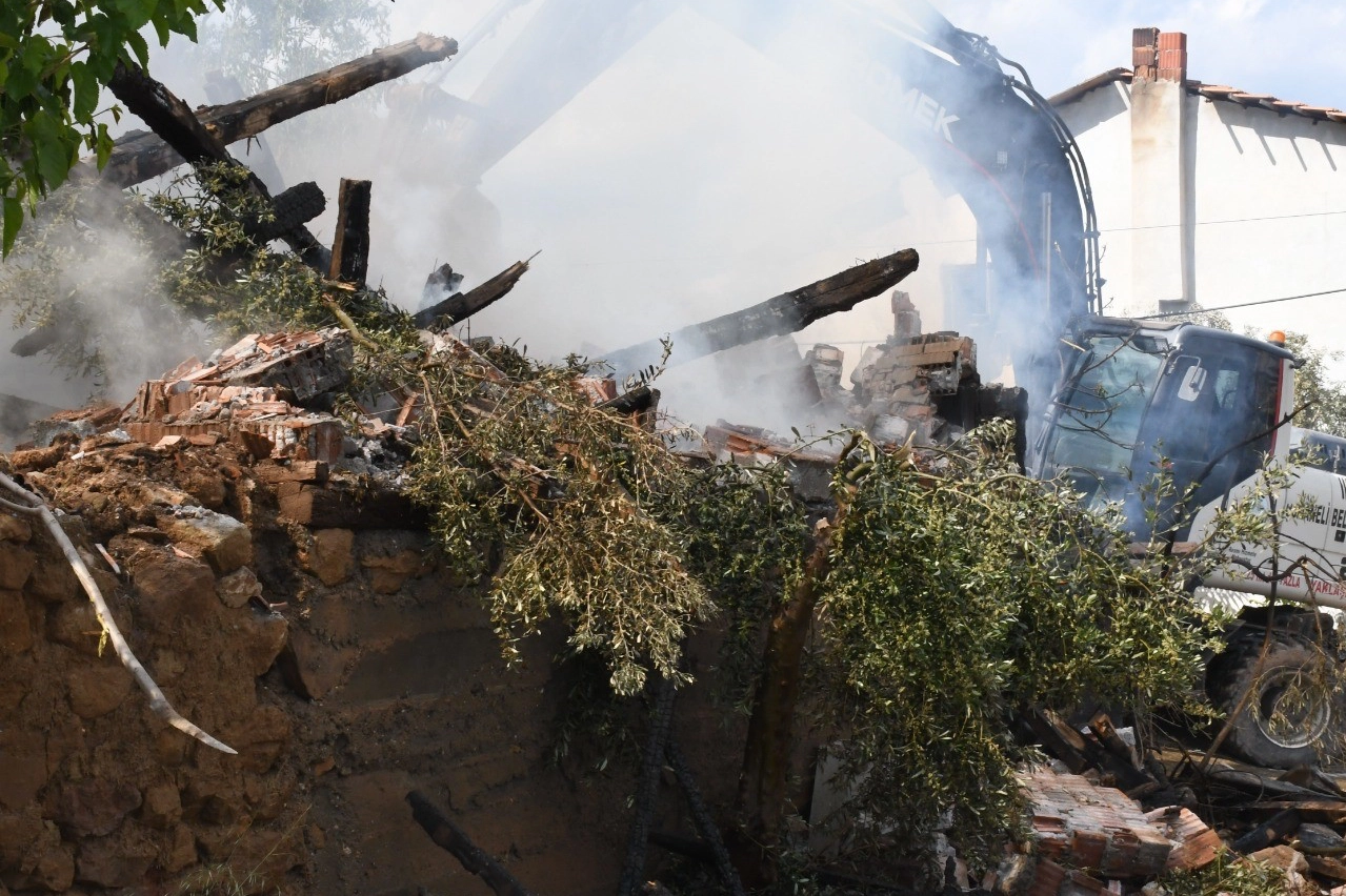 Bilecik'in Osmaneli ilçesine bağlı Camicedit Mahallesi Asımbey Sokak üzerinde kullanılmayan 3 katlı metruk evden dumanları yükseldiğini gören çevre sakinleri durumu hemen 112'ye haber verdi. Olay yerine Osmaneli Belediyesine ait itfaiye ekipleri sevk edilirken, metruk bina kepçe yardımıyla yıkılarak yangın söndürüldü.