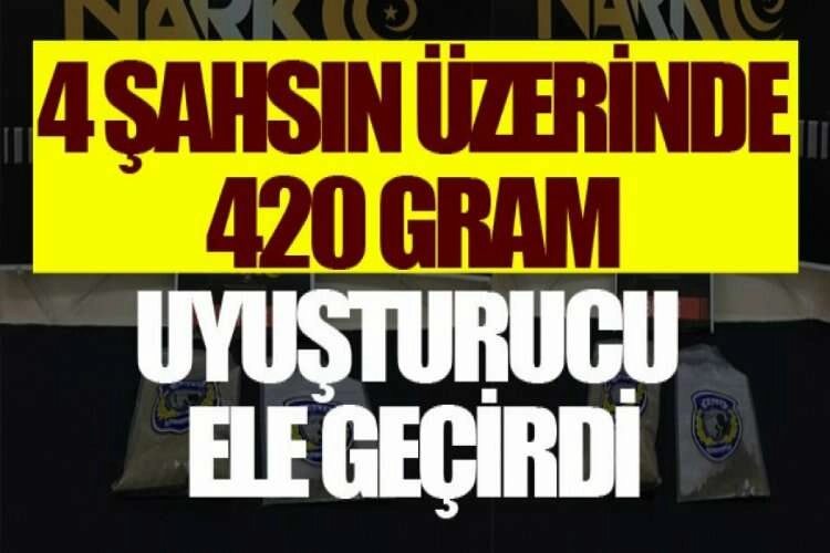 Yunus ekipleri, Yenice Mahallesi Kel Mehmet Sokak üzerinde devriye atarken, kaçan 4 şahsı yakaladılar. Yakalanan Yiğit E. Cemil A., Baran Altan S. Ve Berkay T. isimli şahısların üzerinde yapılan aramada, 420 gram Sentetik Kannobinoid uyuşturucu madde ele geçirildi. 4 şahıs da gözaltına alındı.
