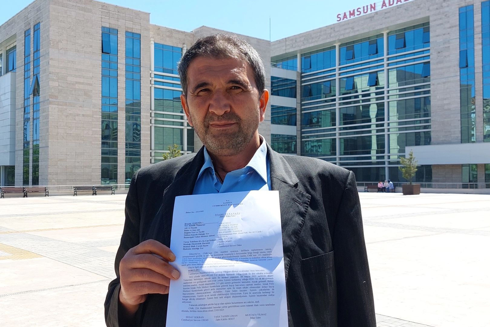 Eşinin 18 gündür kayıp olduğunu belirten Mustafa Yılmaz, bugün Samsun Cumhuriyet Savcılığına giderek eşinin hayatından endişe ettiğini ifade edip bulunması için yardım istedi. Mustafa Yılmaz, "Eşim ile aramızda bir kavgamız olmadı. Aniden ortadan kayboldu. Hayatından endişe ediyorum. Bulunmasını istiyorum" dedi.