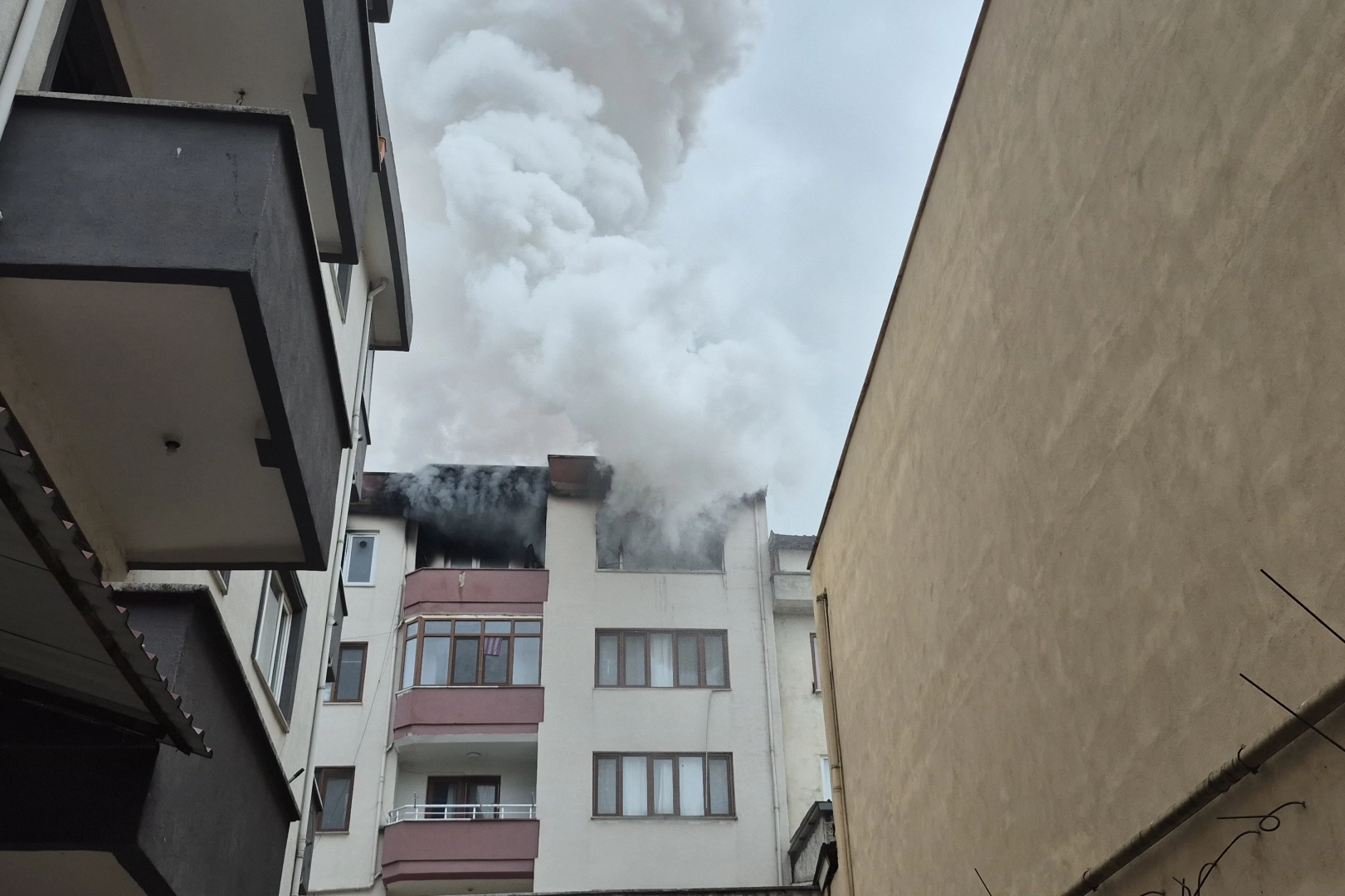 Düzce şehir merkezinde 5 katlı binanın en üst katında çıkan yangında 2'si çocuk 3 kişi dumandan etkilendi.
