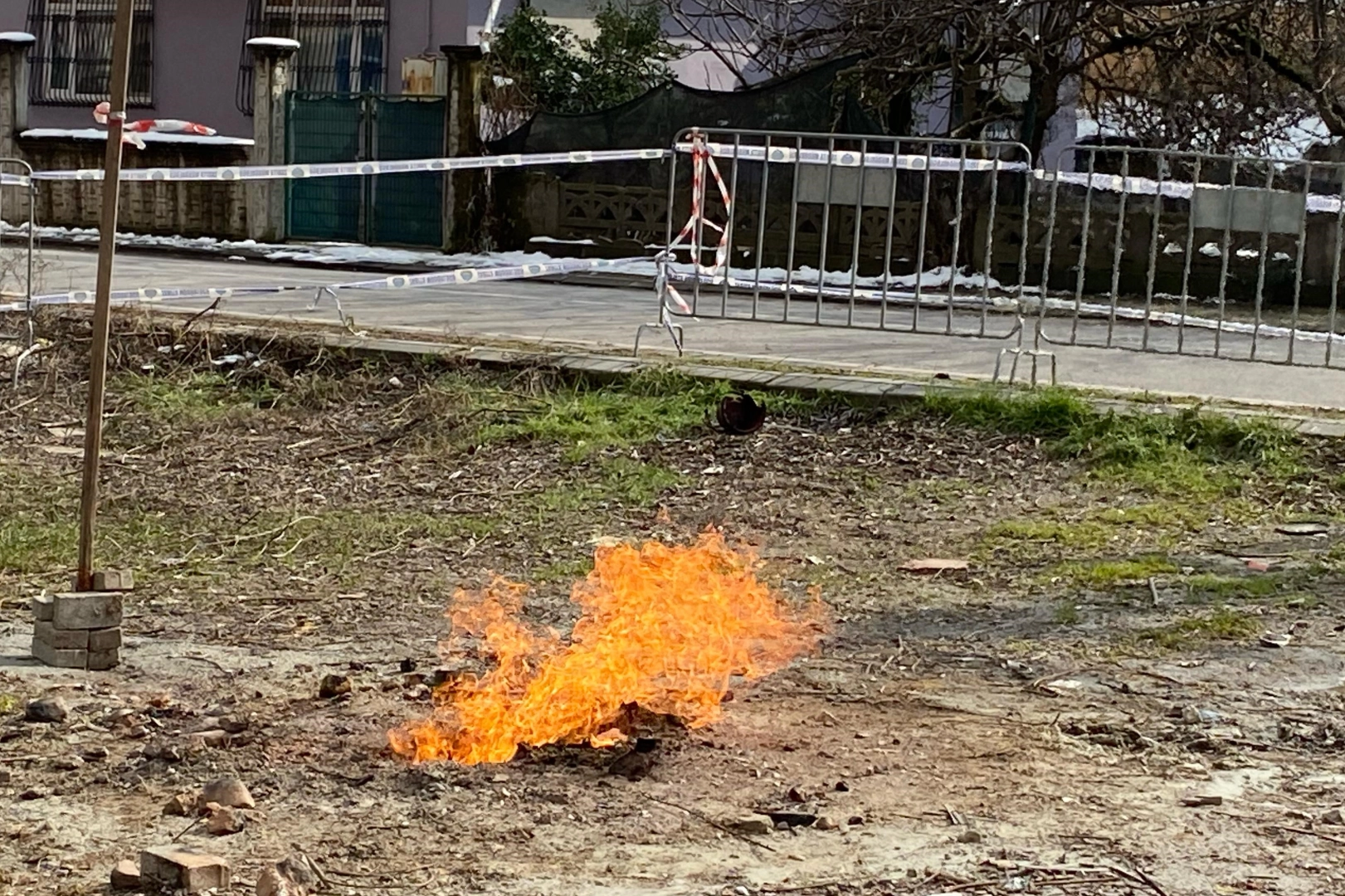 Şerit çekerek bölgede güvenlik önlemi alan ekipler, alevleri söndürüp gazın türünü incelemek gayesiyle numuneler aldı. Ekipler, yer altından çıkan gazı tekrardan kontrollü olarak alevlendirdi. Kar yağışına rağmen altı gündür aralıksız şekilde yamaya devam eden metan gazının başında 24 saat nöbet tutan ekipler, olumsuz durumlara karşı hazır halde bekliyor.