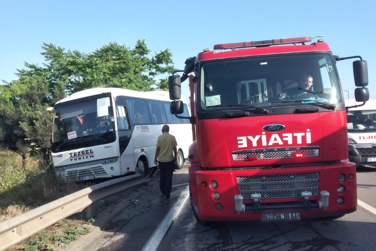 Kırklareli’ne bağlı Lüleburgaz ilçesinde 6 araç zincirleme kazaya karıştı. Yaklaşık 50 metre arayla 2 farklı servis aracı da kaza yaptı 19 kişi yaralandı.