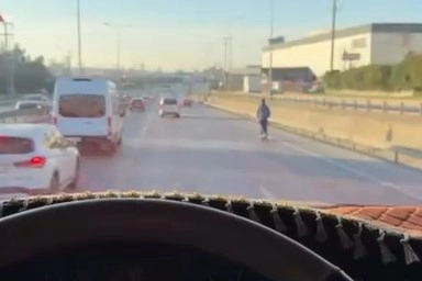 Görüntüleri çeken bir başka sürücü ise 80 kilometre hızla gitmesine rağmen scootera yetişemiyor.