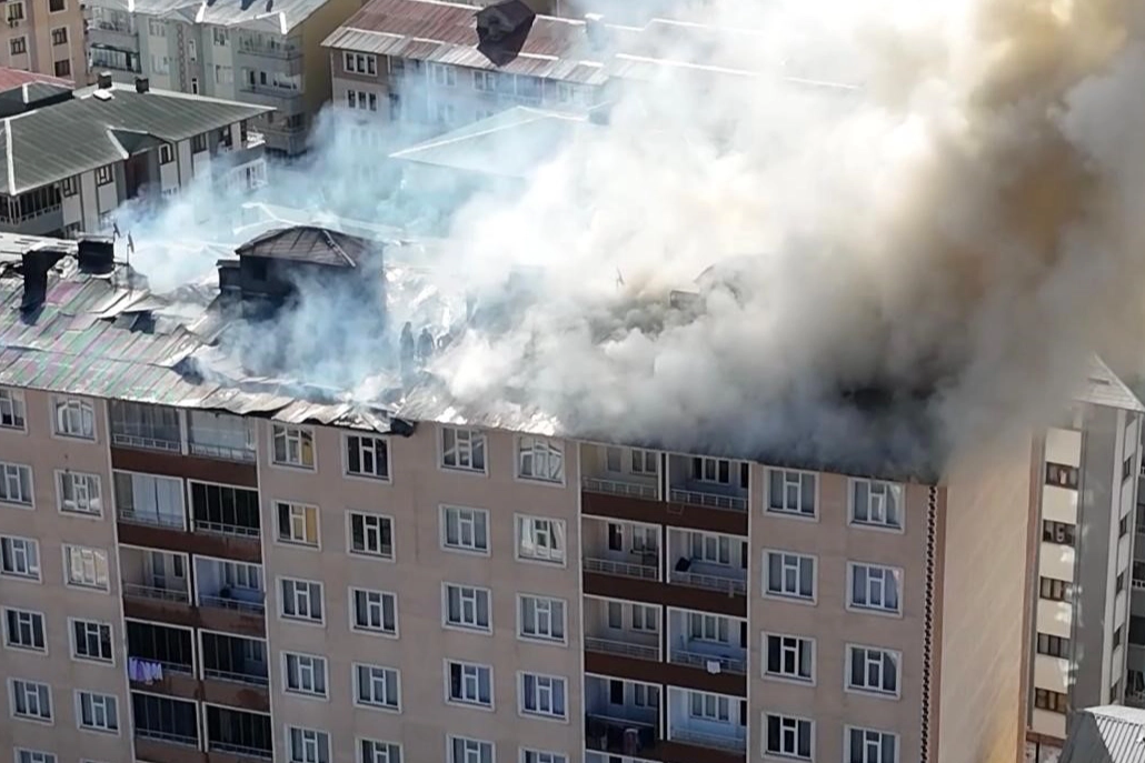 Edinilen bilgiye göre, Eski Erzurum Caddesi üzerinde bulunan 9 katlı bir binanın çatısında henüz bilinmeyen bir nedenle yangın çıktı. Yangın ihbarı üzerine olay yerine sevk edilen itfaiye ve zabıta ekipleri, yangına 12 araç ve 50 personelle kısa sürede müdahale etti.