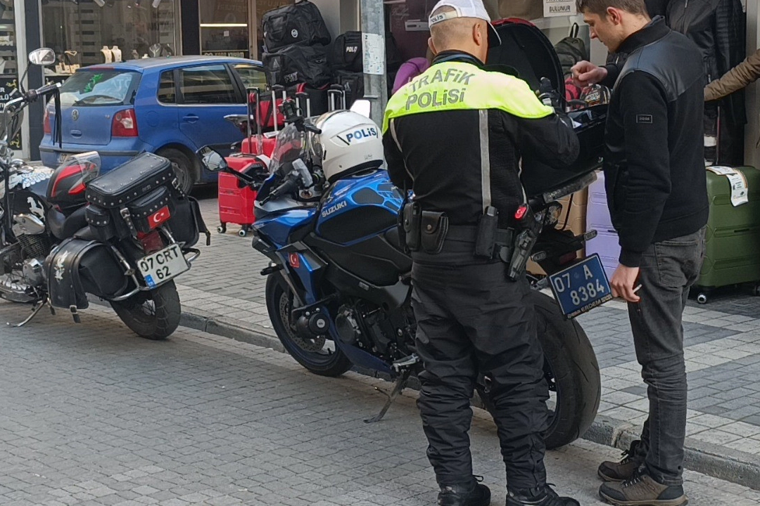 Antalya'nın Manavgat ilçesi İbrahim Sözen Caddesi üzerinde uygulama yapan Manavgat Emniyet Müdürlüğü Trafik Denetleme Büro Amirliği'ne bağlı ekipler, karşı şeritte 07 CRT 62 plakalı motosikletin çıkardığı yüksek sesin gürültü kirliliği oluşturması nedeniyle uygulamayı bırakarak motosikleti takibe aldı. Tim yaklaşık 500 metre süren takibin ardından Şelale Caddesi üzerinde motosikleti durdururken, egzozu tamamen boşaltılmış olan motosikletin sürücüsü Ömer E.A.'ya abartılı egzozdan dolayı 9 bin 267 TL para cezası uyguladı. Motosiklet ise trafikten men edilerek yediemin otoparkına çektirildi.