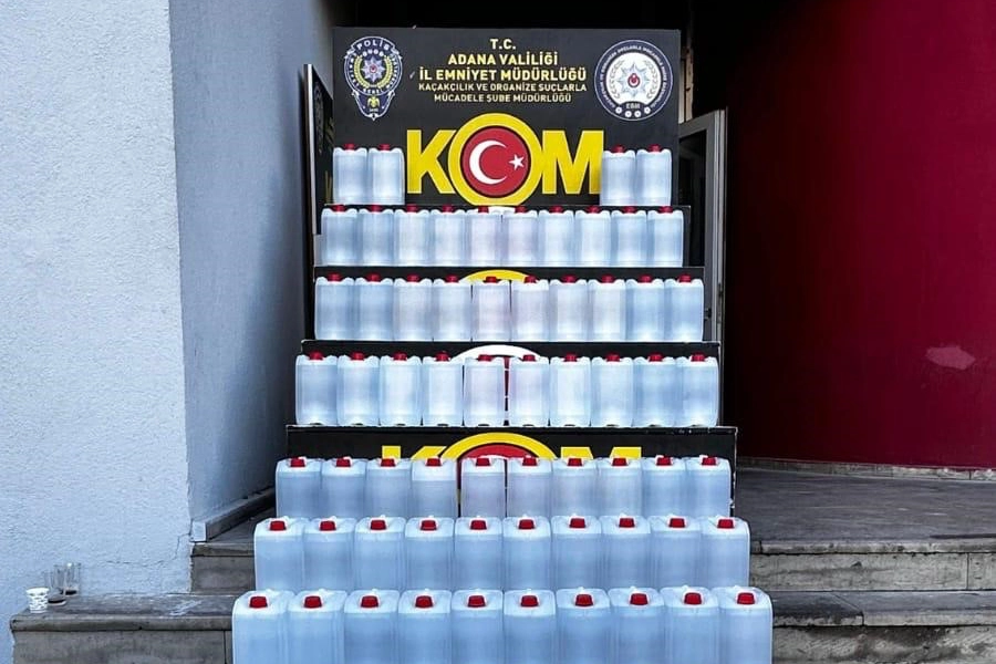Adana'da yılbaşı öncesi polis, 2 ton 80 litre kaçak etil alkol ile 174 şişe kaçak içki ele geçirdi.