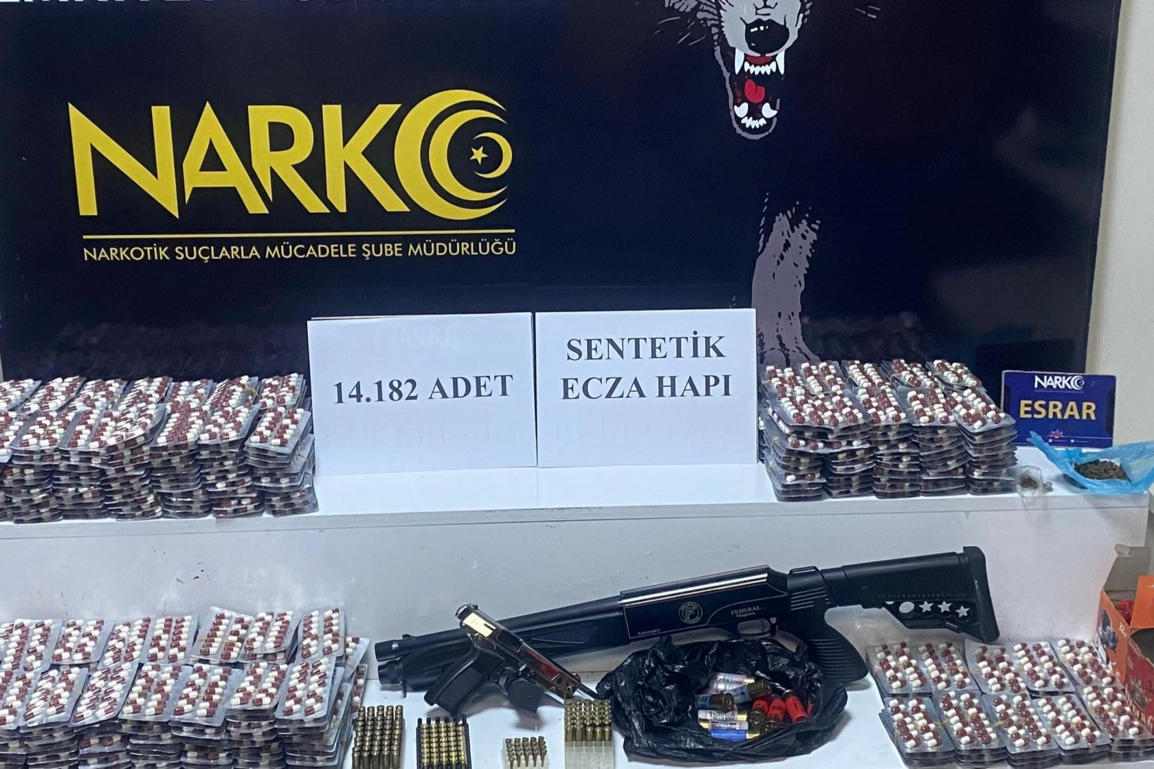 Yapılan aramada 14 bin 182 adet sentetik ecza, 10 gram esrar, ruhsatsız tabanca ve tüfek ele geçirildi. Gözaltına alınıp emniyete götürülen B.Ö.'nin ifadesinde "Uyuşturucu maddeleri içmek için aldım. Ucuza buluncu da toplu satın aldım" dediği öğrenildi. İşlemlerinin ardından adliyeye sevk edilen şüpheli çıkarıldığı mahkemece tutuklandı.