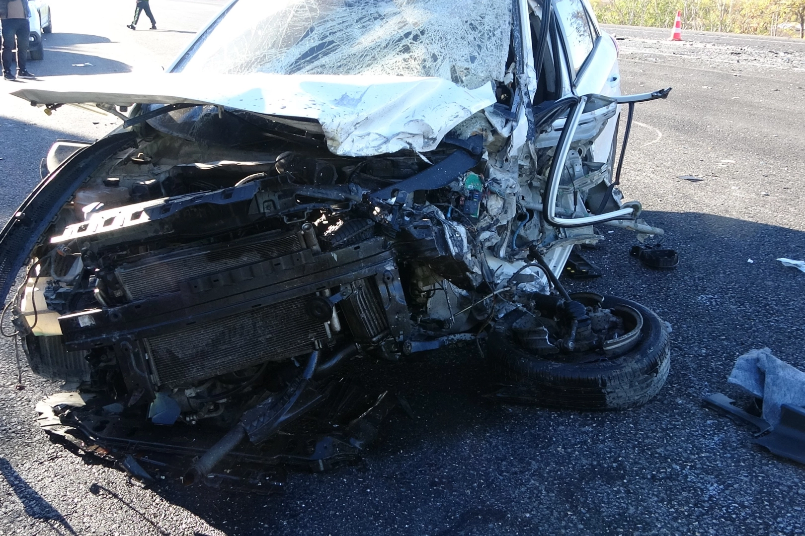 Adıyaman'da, iki otomobilin kafa kafaya çarpışması sonucu meydana gelen feci kazada 1 polis ve 1 muhtar ağır yaralandı.