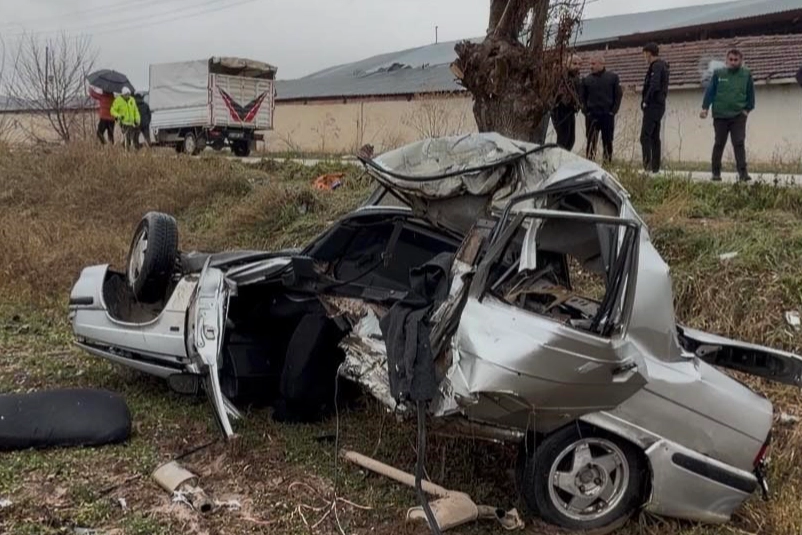 Tokat'ın Zile ilçesinde, sürücüsünün direksiyon hakimiyetini kaybettiği otomobil kontrolünden çıkarak yol kenarındaki ağaca çarpması sonucu ikiye bölündü.