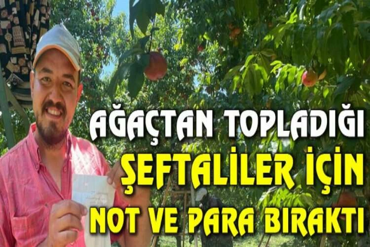 Sabah tarlaya gelen Fatih Öztürk, şeftalilerin kovasında 'Dayanamadık 1 kiloya yakın aldık helal edin' notunu ve bırakılan 20 lirayı görünce şaşırıp kaldı. Bırakılan telefon numarasına mesaj atan Öztürk, 'Para bırakmanıza gerek yoktu hakkım sonuna kadar helal olsun' dedi. Tarla sahibinin çalışanlarından akrabası olan Emine teyze de telefonla aradığı kişiyle konuşarak 'helal olsun' dileklerini iletti.