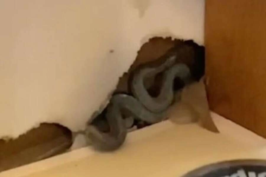 Dört yatak odalı, iki banyolu geniş eve taşındığında bölgenin bir yılan ini olduğu hakkında hiçbir fikrinin olmadığını belirten Hall, ilk yılanı ailenin köpeğinin garajda oyun oynarken bulduğunu söyledi. Şaşırtıcı derecede büyük olan yılan hakkında Hall şöyle dedi: