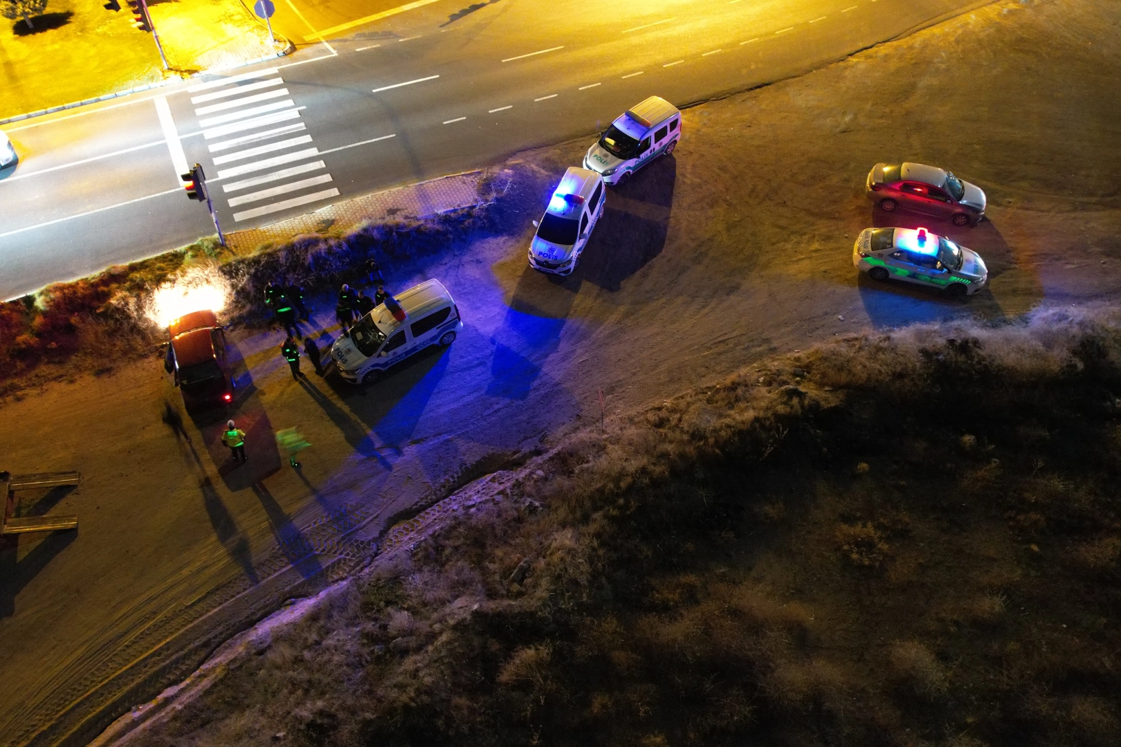Polis ekipleri tarafından durdurulan aracın sürücüsü ve yanında bulunan bir arkadaşı, aracı ve araçta bulunan diğer arkadaşlarını bırakarak kaçtı. Polis ekipleri kaçan şahısları dron ile aradı.