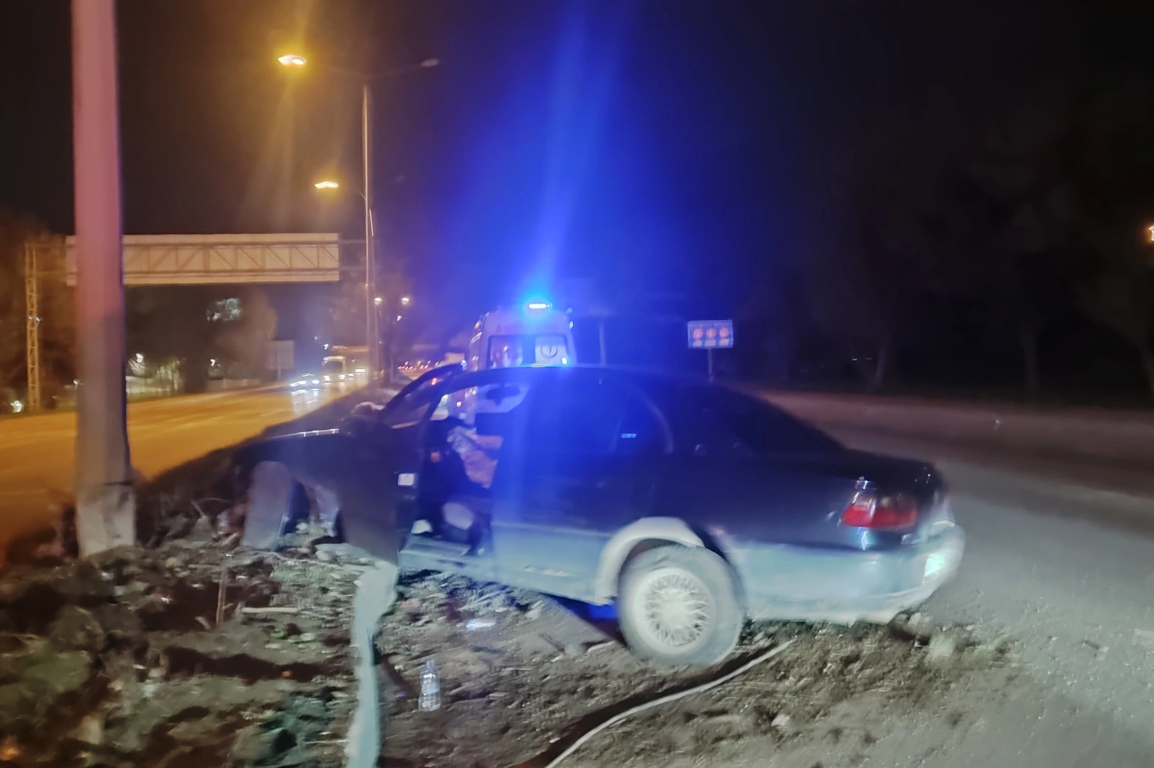 Eskişehir'de 0,30 promil alkollü sürücünün direksiyon hâkimiyetini kaybetmesi sonucu meydana gelen kazada, 26 DR 235 plakalı otomobil önce refüjün banketine, daha sonra da aydınlatma direğine çarparak durabildi.