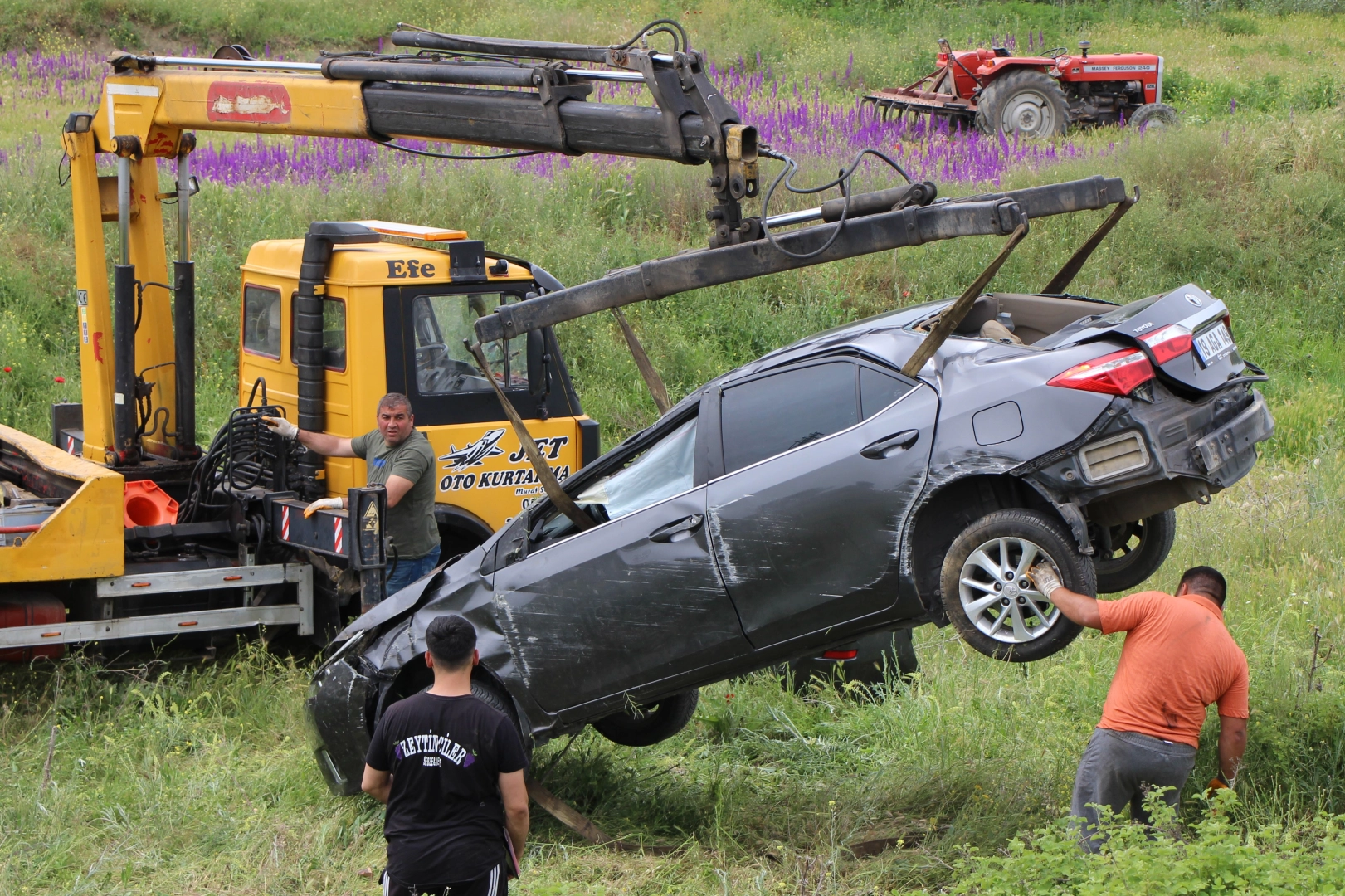 Amasya'da hızla seyir halinde olan otomobil önündeki hafif ticari araca çarparak takla atıp şarampole uçtu.