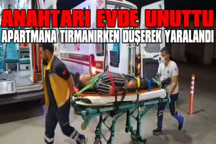 Olay Cumhuriyet mahallesi Ateş sokakta bulunan 3 katlı binanın 2. Katında meydana geldi. Fırat H.(26), evin anahtarını içerde unuttu. Apartmanın 2. Katına çıkmak için önce araç garajının çatısına çıktı. Çatıdaki plastik saçların kırılması sonucu yaklaşık 5 metre yükseklikten beton zemin üzerine düştü. Yaralanan adamın imdadına ailesi yetişti. Yaralı olay yerine sevk edilen Ambulansla İnegöl Devlet Hastanesine kaldırıldı. Polis olayla ilgili soruşturma başlattı.