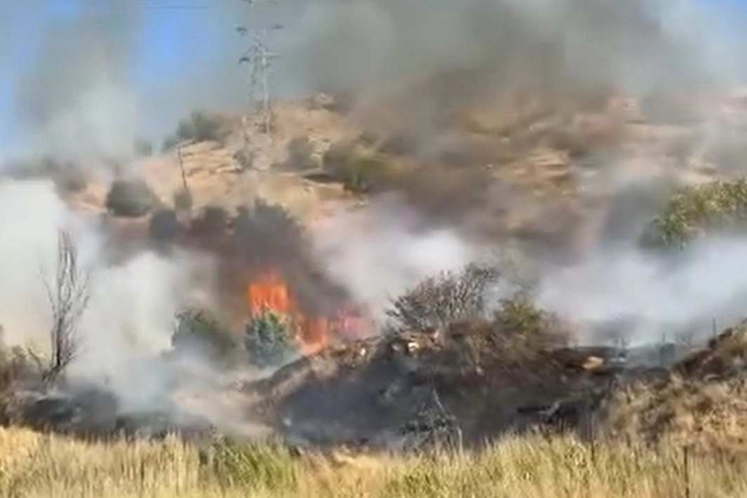Yangının halen devam ettiği öğrenilirken, bölgeye ekiplerin intikal etmesi bekleniyor. Yangın, yolda geçenler tarafından görüntülendi.
