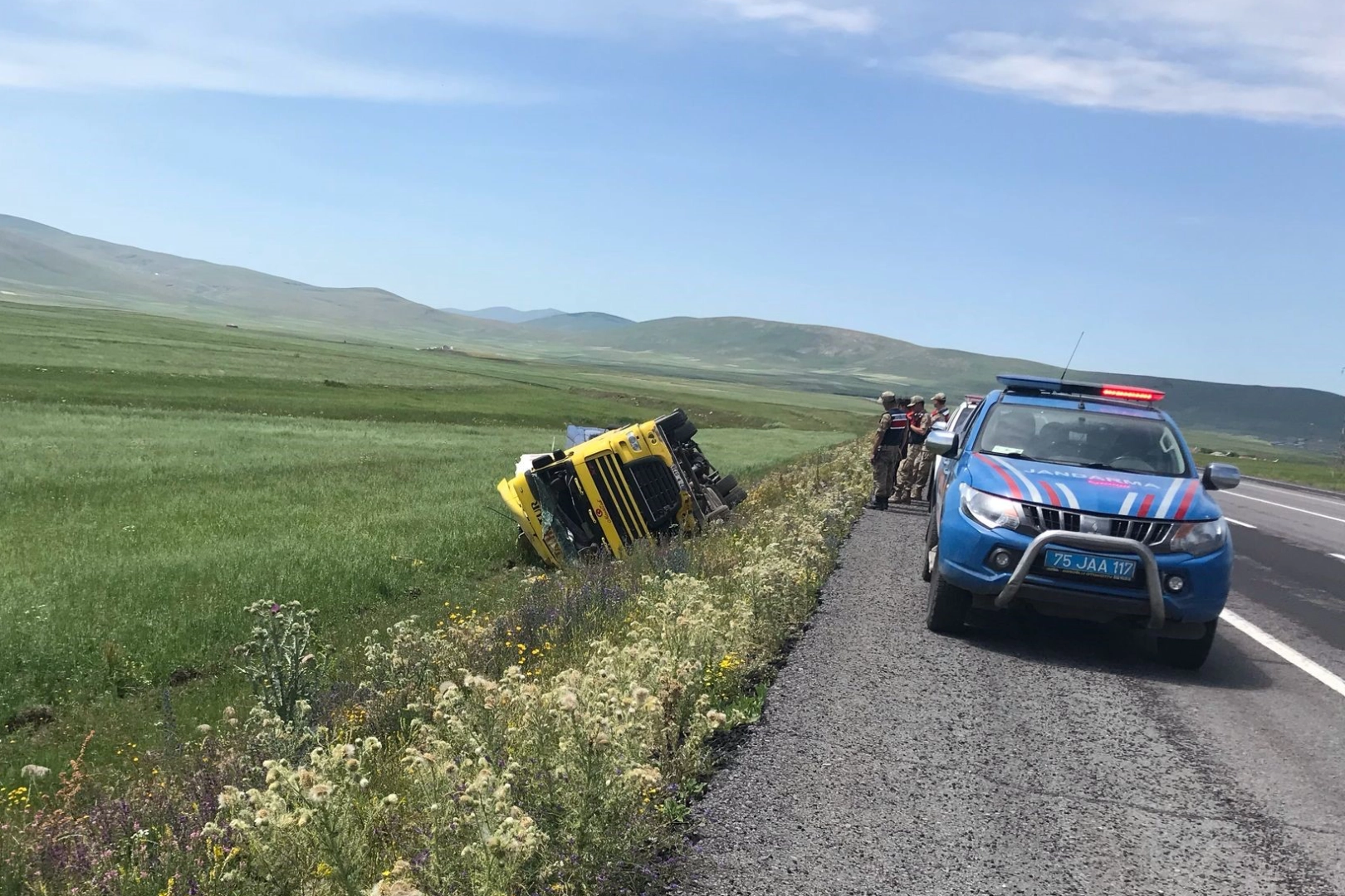 Ardahan-Kars karayolunda tırın şarampole devrildiği kazada 1 kişi yaralandı.